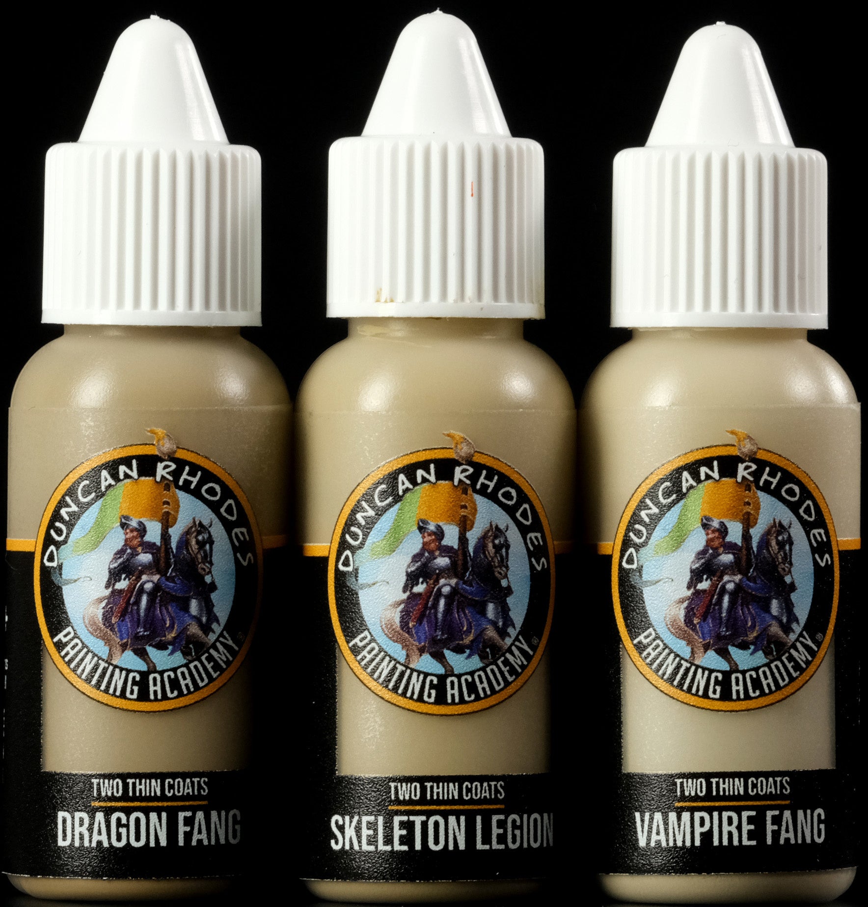 Trans Atlantis Games and the Duncan Rhodes Painting Academy have teamed up to release an incredible new acrylic paint series that meets the highest standards - TWO THIN COATS, designed by Duncan Rhodes & Roger Yates. The TWO THIN COATS color series consists of primary and secondary colors, skin tones, natural tones, metallic colors and washes. All colors were developed as a system of three, consisting of shadow, mid-tone and highlight. Of course, all colors can also be used and mixed individually to achieve the desired result! TWO THIN COATS colors impress with their smooth consistency and incredible coverage. They can be thinned well and applied as easily as evenly. The perfect colors for beginners and advanced users alike!